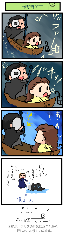 サイト名:MoonbaseCafe (ムーンベースカフェ) マスター:モカ様 URL: http://mbc.squares.net/ 内容:ゲームやマンガ、映画など幅広いジャンルでイラストを描かれている素敵絵師様です! 同人要素・ネタバレ有り! サイト名:オペラ座の怪人アホ4コマ マスター:yayoing様 URL:http://aho4koma.sakura.ne.jp/ 内容:映画「オペラ座の怪人」のパロディマンガをメインとした洋画・海外ドラマ等の二次創作サイト様です。 爆笑間違いなしの素敵サイト様v ネタバレ有り! サイト名:L*L マスター:山虎猫様 URL:http://www.geocities.jp/donburichawan/little-lotte.html 内容:女性向の映画メインの同人イラストサイト様です。 「Vフォー・ヴェンデッタ」を中心としたイラストを描かれています。 オペラ座有り。 サイト名:青い幻燈 マスター:暁月 黎様&美碧樹々様 URL:http://sampleblue.web.fc2.com/index.html 内容:こちらのサイトはお二人が運営されている、映画版「オペラ座の怪人」中心の二次創作サイト様です。 本編沿いのお話が主で、素敵小説でございます。 美麗な文字達にため息がうっかり出ちゃうこと間違いなし!! |